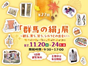 群馬の絹を使用した多彩な絹製品の展示・販売を行います。