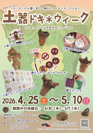 開催日:2026年04月25日(土)~05月10日(日)開催時間:9:00~16:30ホンモノの土器に見て・触れて・ドキドキしちゃおう! GW期間恒例の特別企画を今年も開催します。 ふ...