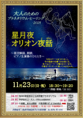 公開日:2025年10月11日スタンプ対象プラネタリウム・ヒーリング2025 「星月夜(ほしつきよ)★オリオン夜話」 星空生解説と朗読とピアノのひととき