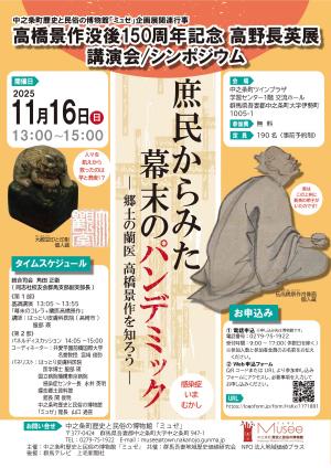 令和7年度第2回企画展【後期】学術編「感染症に立ち向かった上州の蘭学者たち」(高橋景作没後150周年記念高野長英展 関連行事)